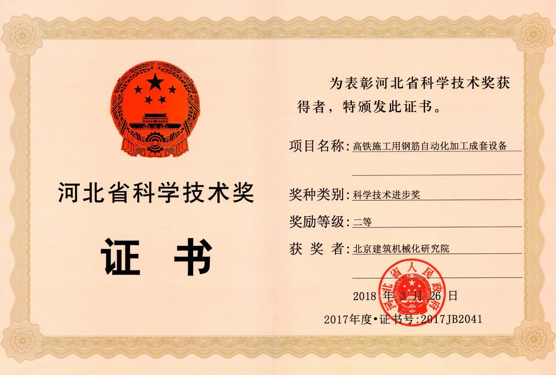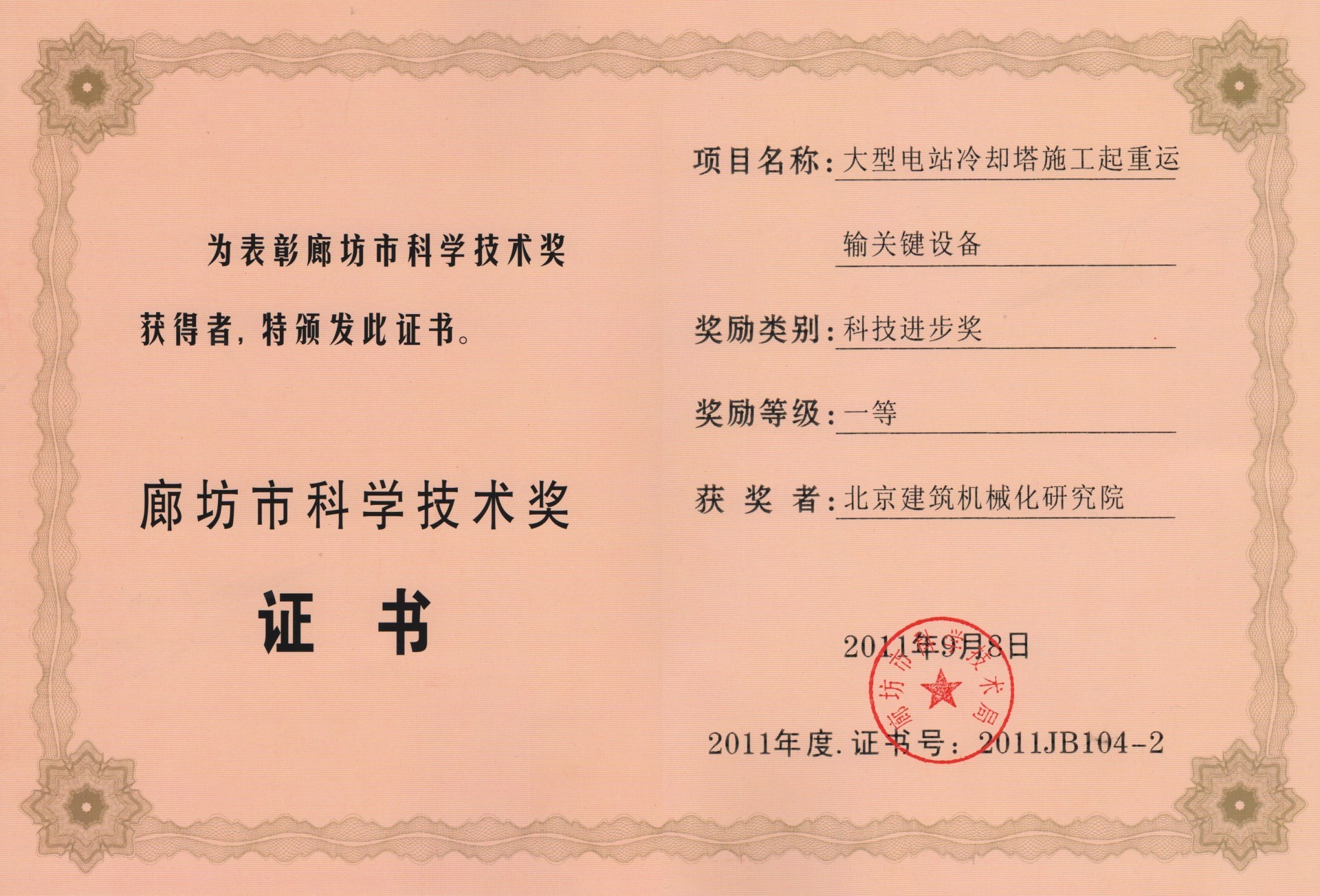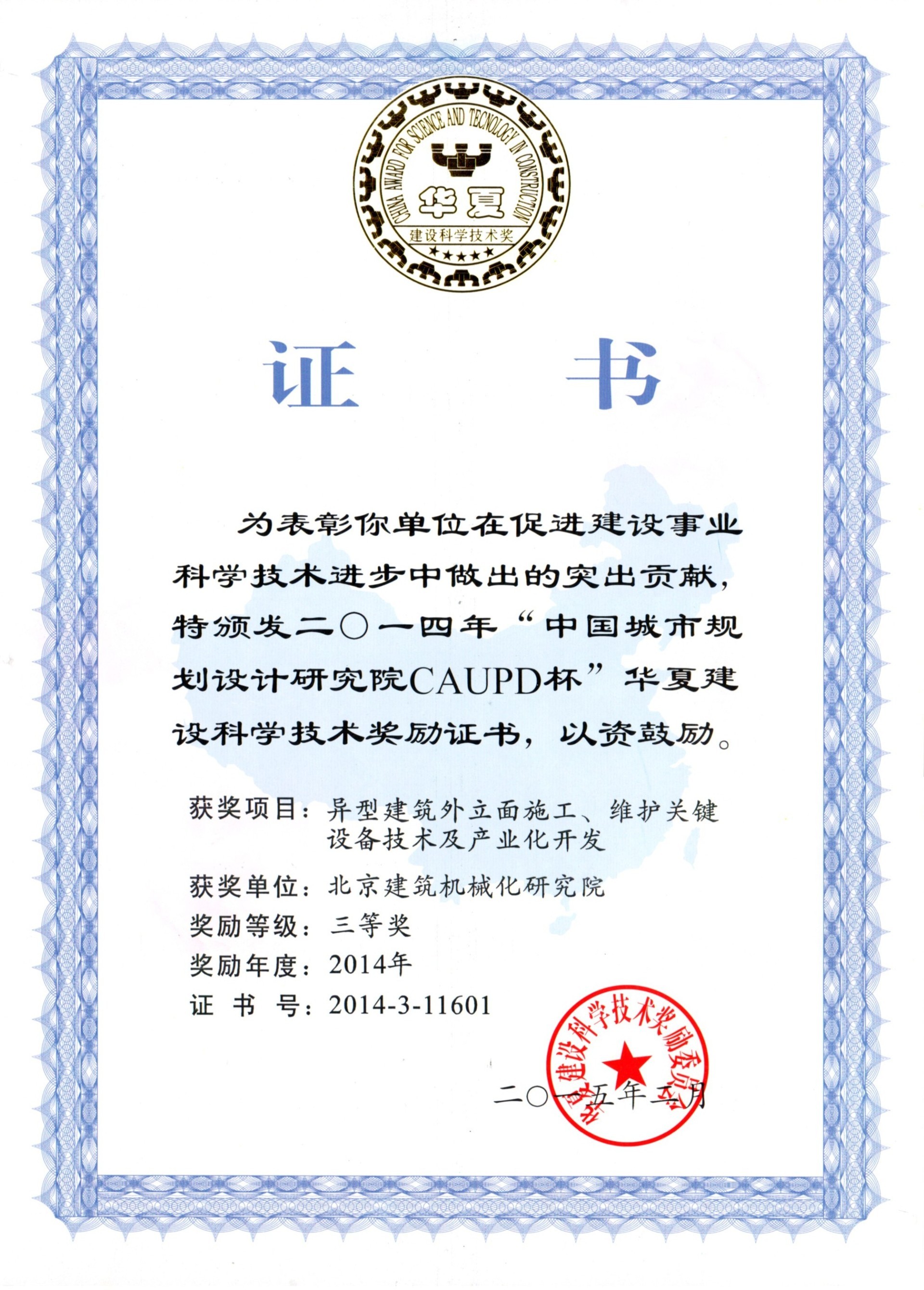 北京建筑機(jī)械化研究院—獲獎證書
