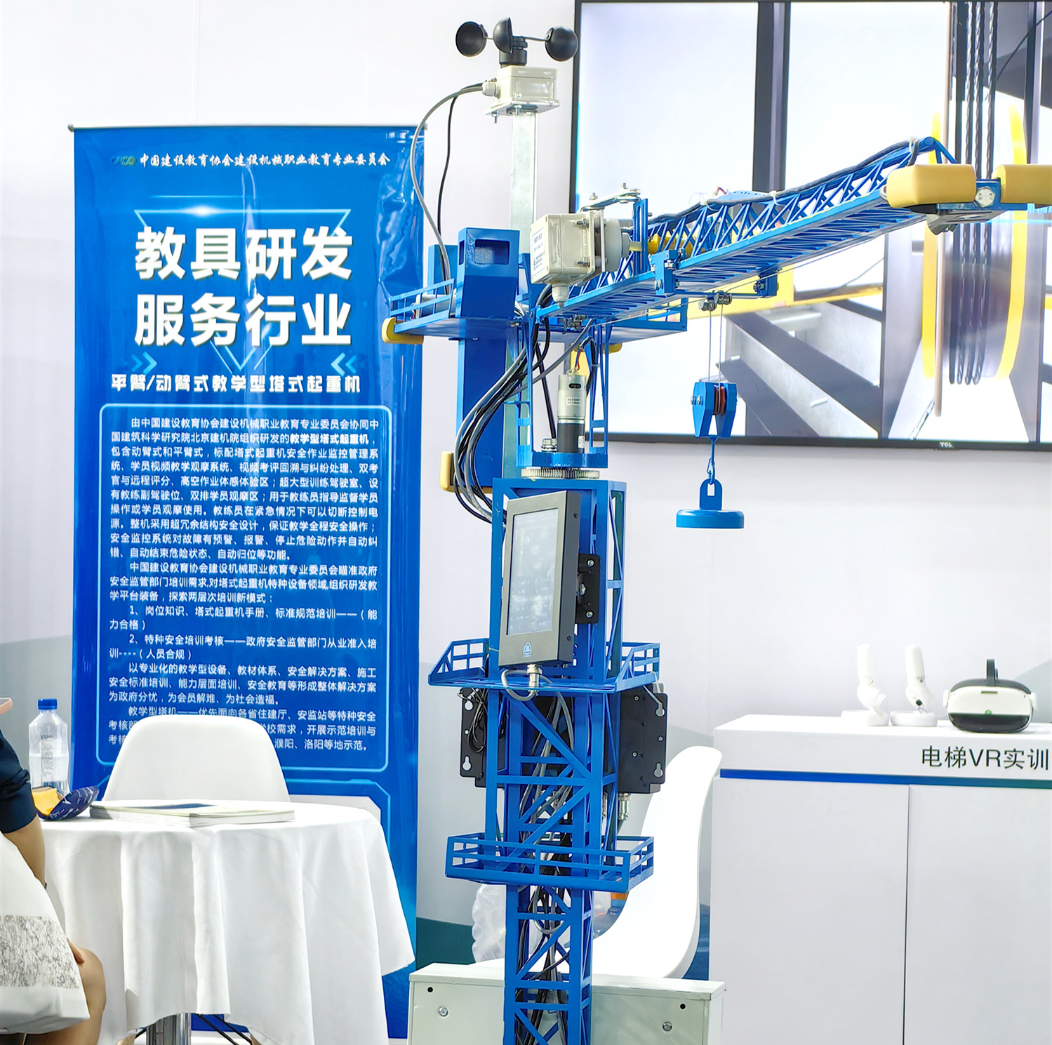 平臂/動(dòng)臂式教學(xué)專用塔式起重機(jī),標(biāo)配塔式起重機(jī)安全作業(yè)監(jiān)控管理系統(tǒng)、學(xué)員視頻教學(xué)觀摩系統(tǒng)、高空作業(yè)體感體驗(yàn)區(qū)等,整機(jī)采用超冗余結(jié)構(gòu)安全設(shè)計(jì),保證教學(xué)全程安全操作。本次展會(huì)展出的縮小比例的模型具有與真機(jī)相同的操作指令、動(dòng)作和安全監(jiān)控功能,可作為教學(xué)培訓(xùn)專用教具。
